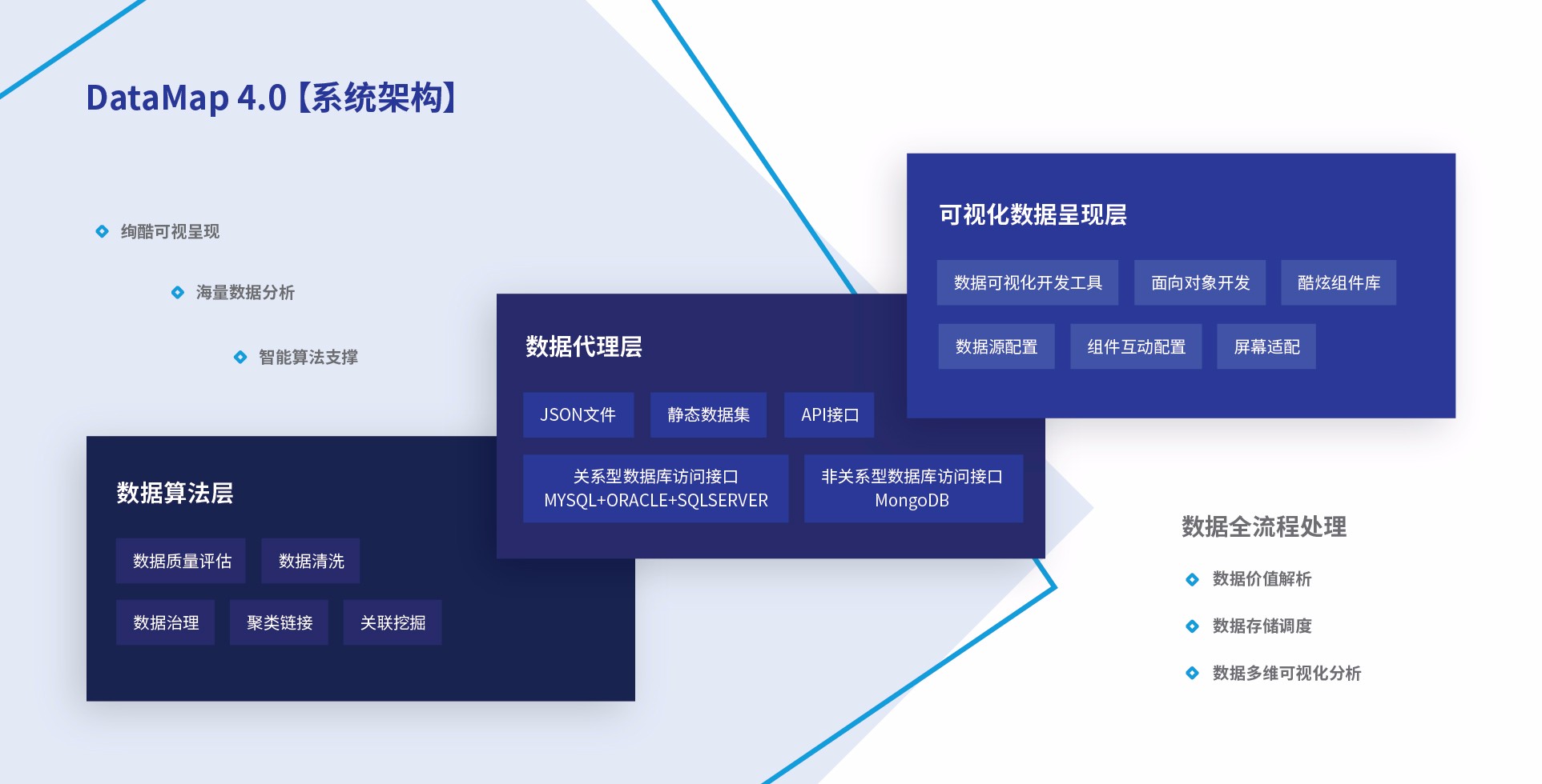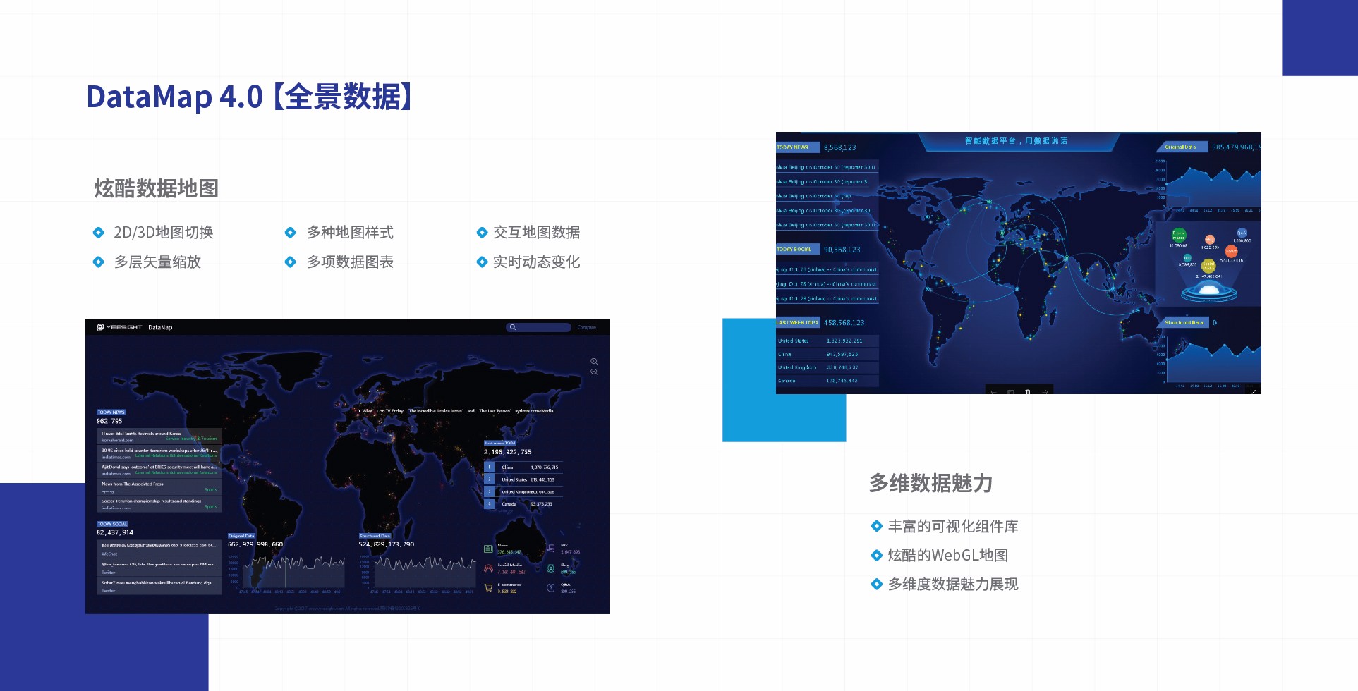 DataMap4.0是中譯語通(GTCOM)自主研發(fā)的一款強(qiáng)大的數(shù)據(jù)可視化開發(fā)工具。它不僅可以定制化分析客戶自有數(shù)據(jù),更可依托中譯語通自有的知識圖譜、自然語言算法、恐慌預(yù)測分析等智能算法,實現(xiàn)對各種數(shù)據(jù)的深度可視化挖掘分析;還能夠提供便捷、所見即所得的數(shù)據(jù)可視化配置工具,滿足不同行業(yè)客戶在事件監(jiān)測、業(yè)務(wù)管控、風(fēng)險預(yù)警、地理信息分析等多領(lǐng)域業(yè)務(wù)的可視化需求。